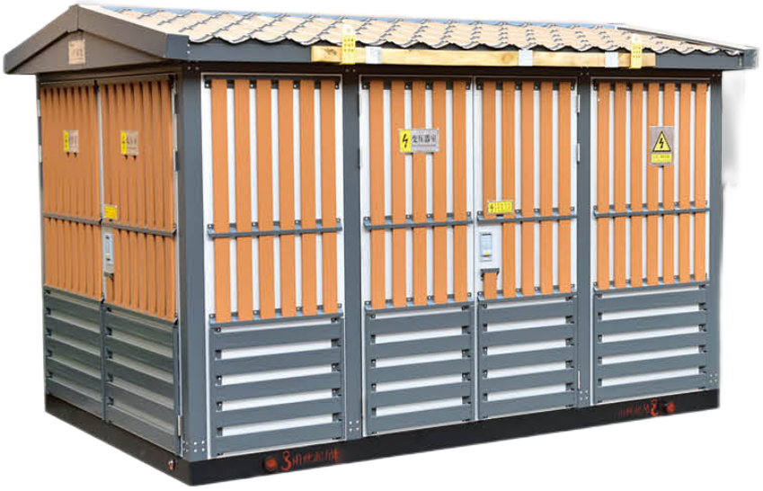 变压器可采用干式变压器或油浸式变压器,通常为品字形或目字形结构布局, 高压室配备高压负荷开关、熔断器和避雷器,低压室包含低压空气开关、电流互感器等元件。方案多样、组合灵活,各部件通过机械联锁实现五防功能(防止误操作)。